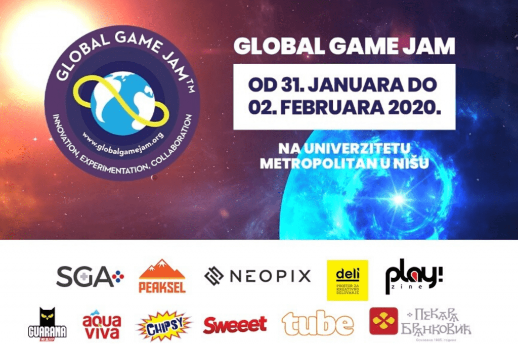 Na 800 lokacija u 105 zemalja širom sveta, u istom trenutku, od petka, 31. januara do nedelje, 2. februara svetska gejmerska zajednica biće okupljena oko istog cilja – kreiranje nove igrice. Peti put biće održan u Nišu Global Game Jam u prostorijama Univerziteta Metropolitan.